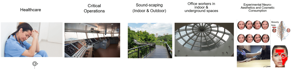 - Environmental (Urban) Neuroscience:We examine how indoor and outdoor spaces, along with their architectural features, impact human performance, health, and happiness. A recent grant focuses on the effect of soundscapes on human cognition, and we are working to validate spaces for recovery.